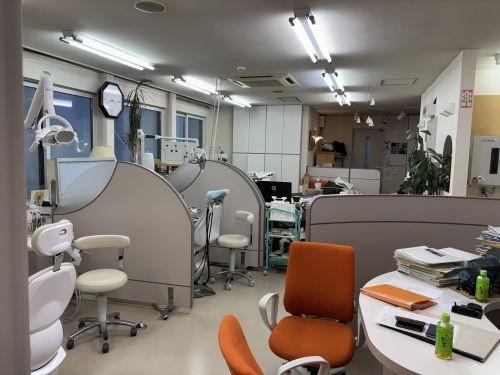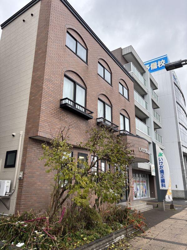 居抜き歯科診療兼3LDK住居、2方向道路に接道して建物裏側にブロック造車庫5戸、青空駐車場5台以上あり。現在診療中・入居中引渡日要相談。
