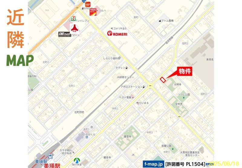 JRに並行する駅前通り沿い、白金温泉行きの十勝岳温泉美瑛線の角地から50m、小さなお店にも、住宅にも向く立地です
