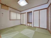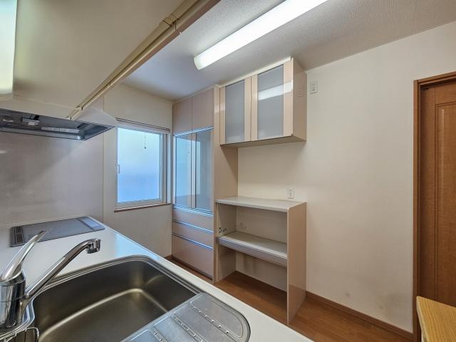 電気温水器、電気パネル暖房、システムキッチン(IHクッキングヒーター)、カップボード、1.25坪ユニットバス、三面鏡洗面化粧台、タンクレストイレ・温水洗浄便座(2か所)、エアコン(2台)、電動物干し、TVドアホン、琉球畳、屋外物置