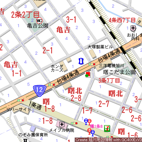 - 亀吉3条1丁目停(旭川電気軌道)徒歩約1分