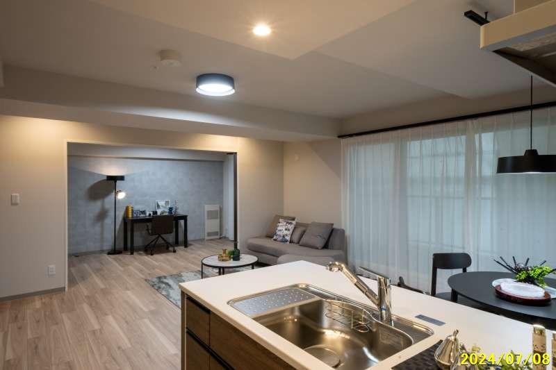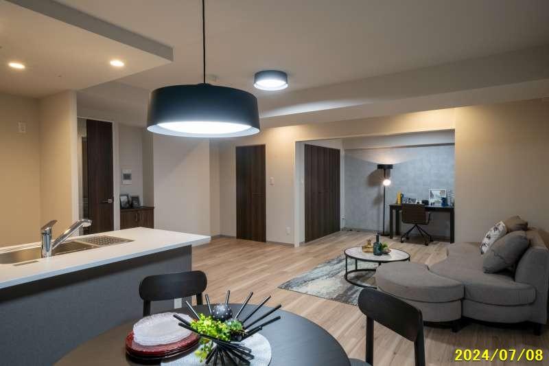 旭川駅から徒歩8分! 新築分譲マンション「ロジェ・プライムスクエア神楽」 (2025年9月完成) 3LDK、南西向き角部屋 3面バルコニーで日当たり、風通し共に良好 広々リビング・ダイニングで、続きの洋室も開放すると、なんと22.7帖もの広さ ゆとりに包まれる贅沢な間取り