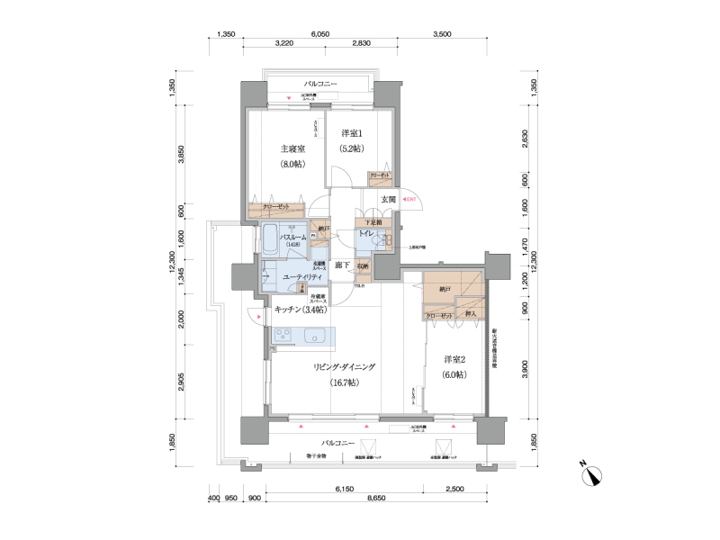 - 89.65㎡ (約27坪) (バルコニー面積 39.65㎡)