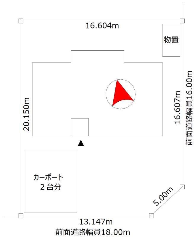 - 南東向き角地 間口 16.604m