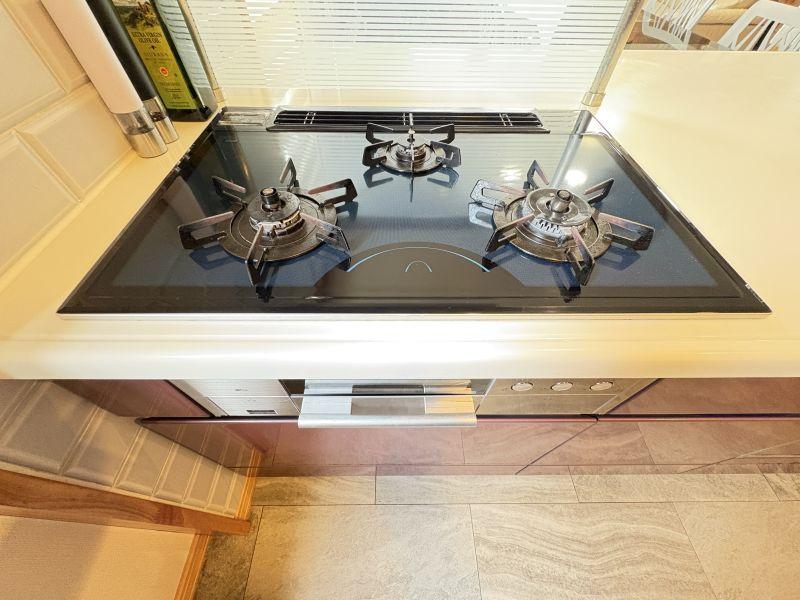 ■暖房(灯油)、給湯と煮炊きは都市G(えこっと24)を使用しております。修繕リフォーム 1F床、アクセントクロス:灯油ストーブ:トイレ:2連カーポート:ガーデンテーブル、フェンス:2Fエアコン等