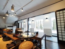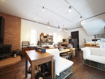 1F雑貨店として使用中、暖炉もあり雰囲気抜群な空間。居宅スペースとしてももちろんご利用可能。1Fと2Fにトイレ、キッチンあり(1Fミニキッチン)