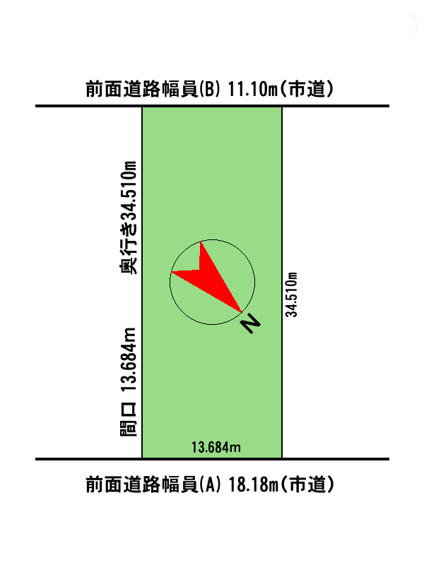 - 北東向き 間口 13.684m