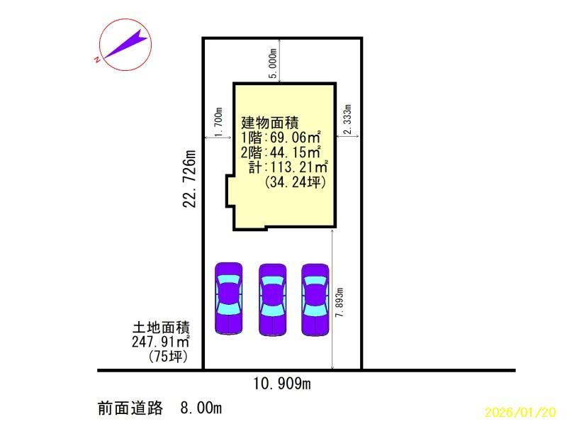 - 北西向き 間口 10.909m