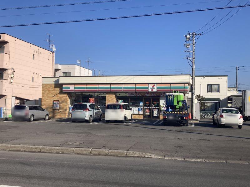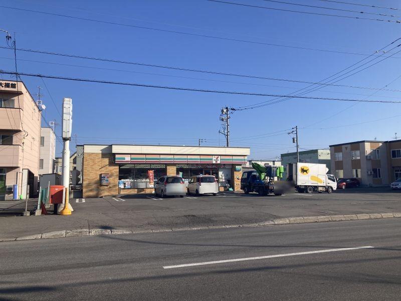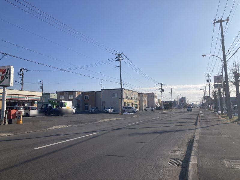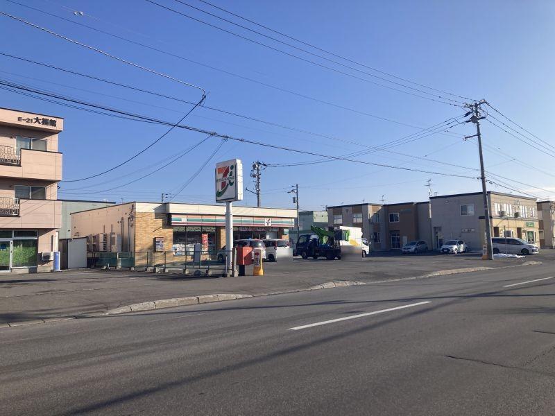 旭神東神楽線沿いのセブンイレブン跡店舗。周辺にはコープさっぽろ、飲食店等多数あります。