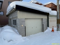 建物前車庫有(コンクリートブロック造亜鉛メッキ鋼板ぶき平屋建、1台駐車可)