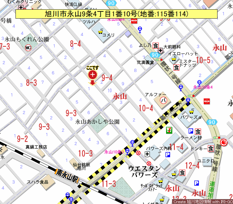 - 旭川市永山9条4丁目1番10号(地番:115番114)