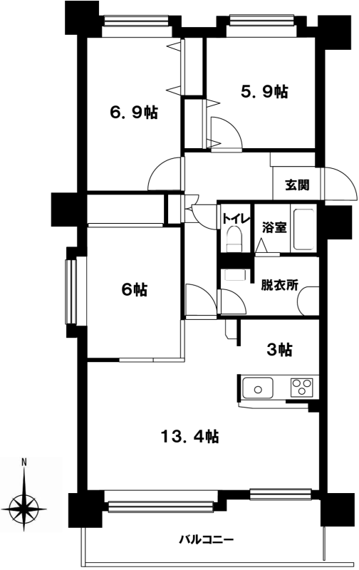 - 76.86㎡ (約23坪) (バルコニー面積 11.02㎡)