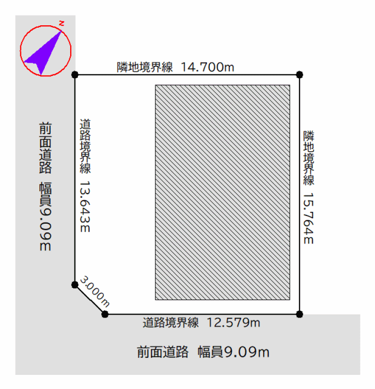 - 南西向き角地 間口 13.643m