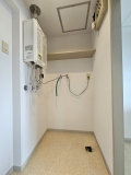 都市ガス、システムキッチン(ガスコンロ)、ガス給湯器、ガス暖房、温水洗浄便座、縦型洗面化粧台、ユニットバス、TVドアホン、電気エアコン、シューズボックス、トランクルーム、