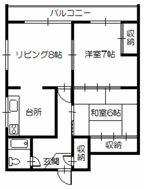 都市ガス、ガスコンロ、ガス給湯器、灯油暖房、室内物置、和室、バルコニー、三点ユニットバス
