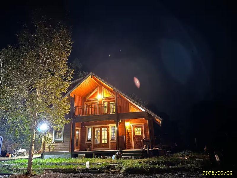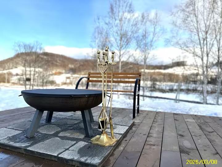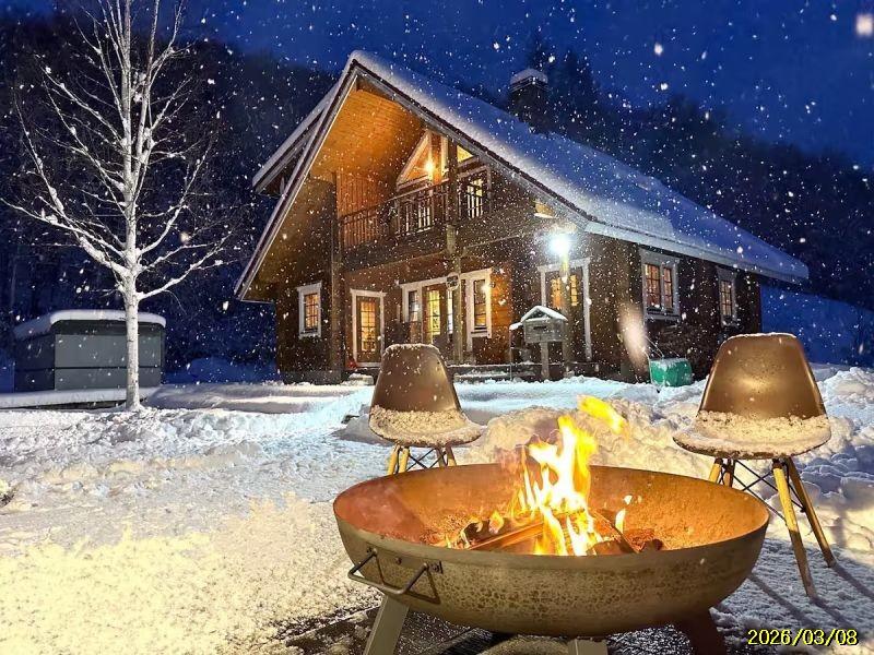 には薪ストーブを備え、屋外には焚き火スペースやBBQ設備があり、満天の星空を眺めながら特別な滞在体験を楽しめます。約5,500㎡の広大な敷地は開放感があり、周囲の住宅とも距離があるためプライベート感の高い環境。庭にはシマエナガやキタ