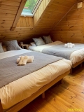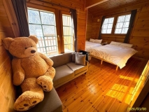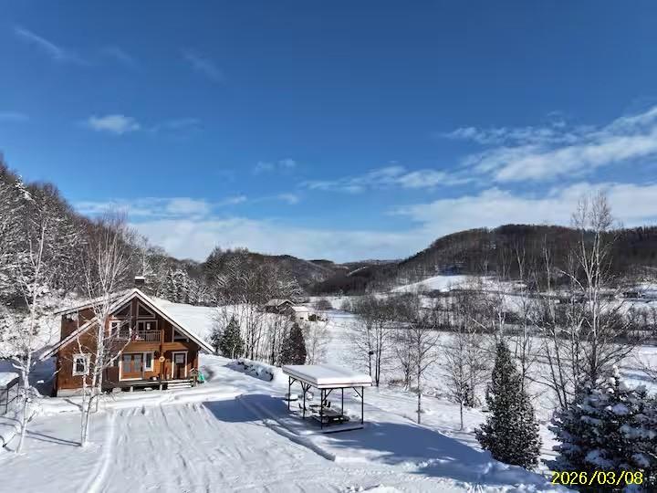 中富良野の自然豊かな高台に建つ、フィンランドの老舗ログハウスメーカー「ホンカ」製の本格ログハウス。現在は民泊施設として運営されており、最大12名まで宿泊可能なグループ向け貸別荘タイプの宿泊施設として活用されています。室内