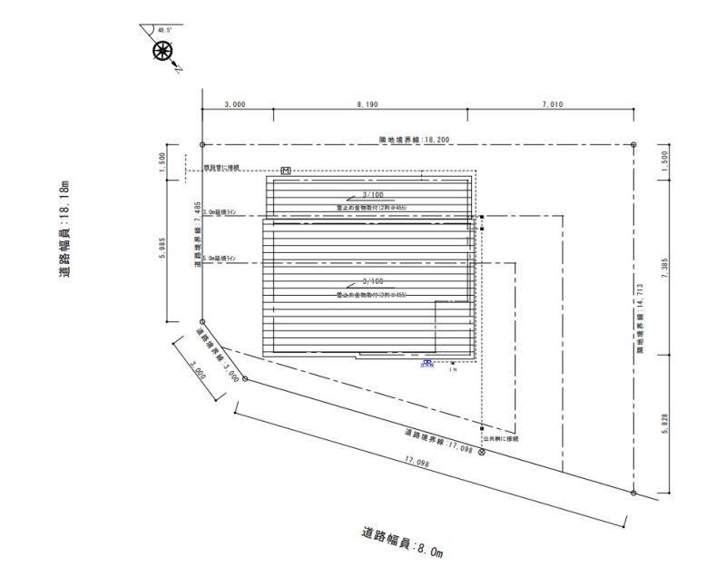 - 北東向き角地 間口 17.098m