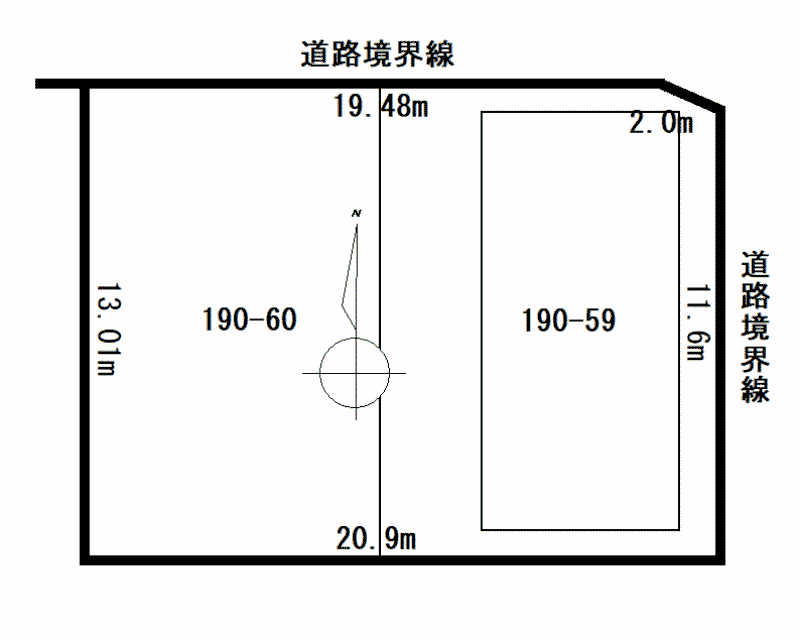 - 北東向き角地 間口 20.1m