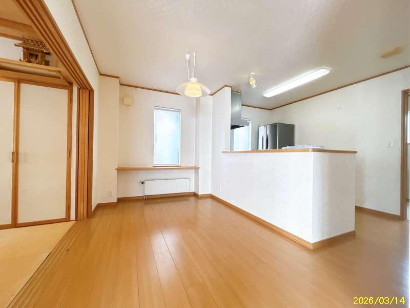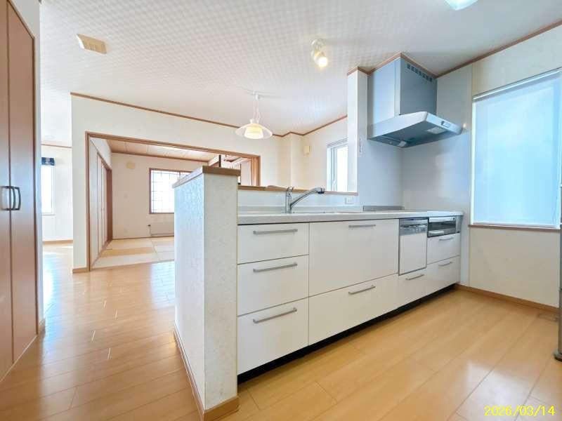 対面式キッチン・1坪ユニットバス・電動物干し・大容量の収納スペース・トイレ2か所・物置スペース・2連棟式の車庫あり 車庫の高い車も収納可能