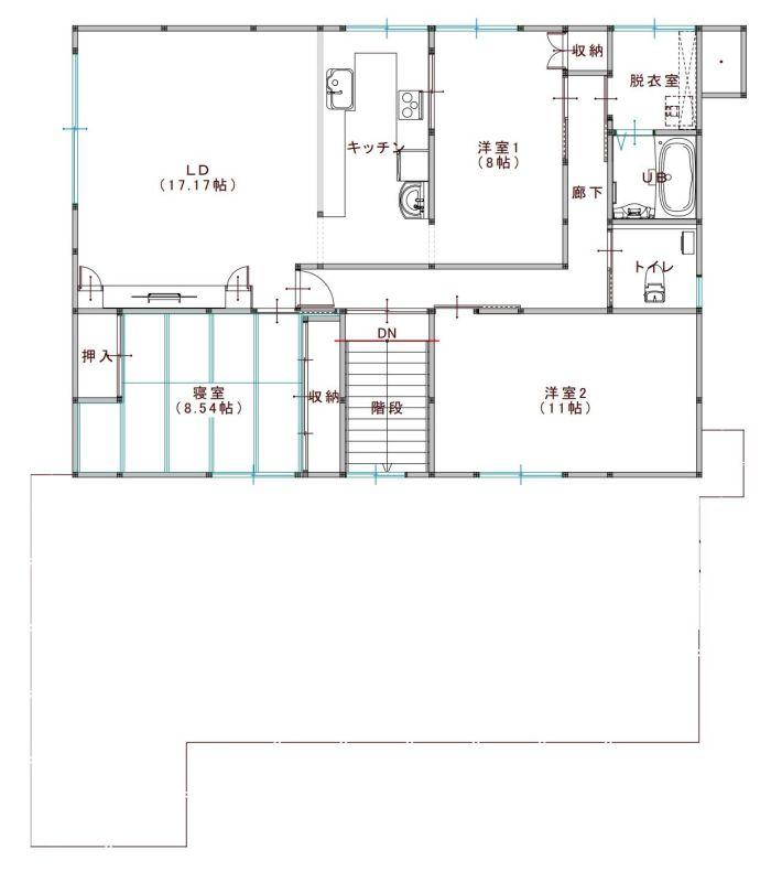 ◎1階は以前木工所として使用されており軽量鉄骨の柱が入っており、作業所や倉庫としても利用出来ます。2階が居住スペースで3LDKの間取です。前面道路には都市ガスが埋設されていますが、引込はされていません。