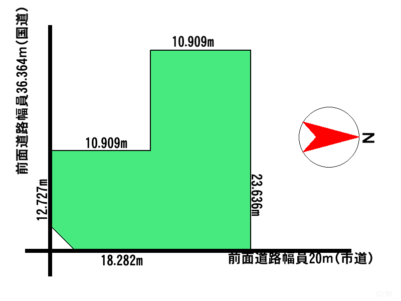 - 東向き角地 間口 18.282m