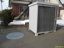 外構は、車庫とカーポート、物置に、経済的な地下水の融雪槽があります
