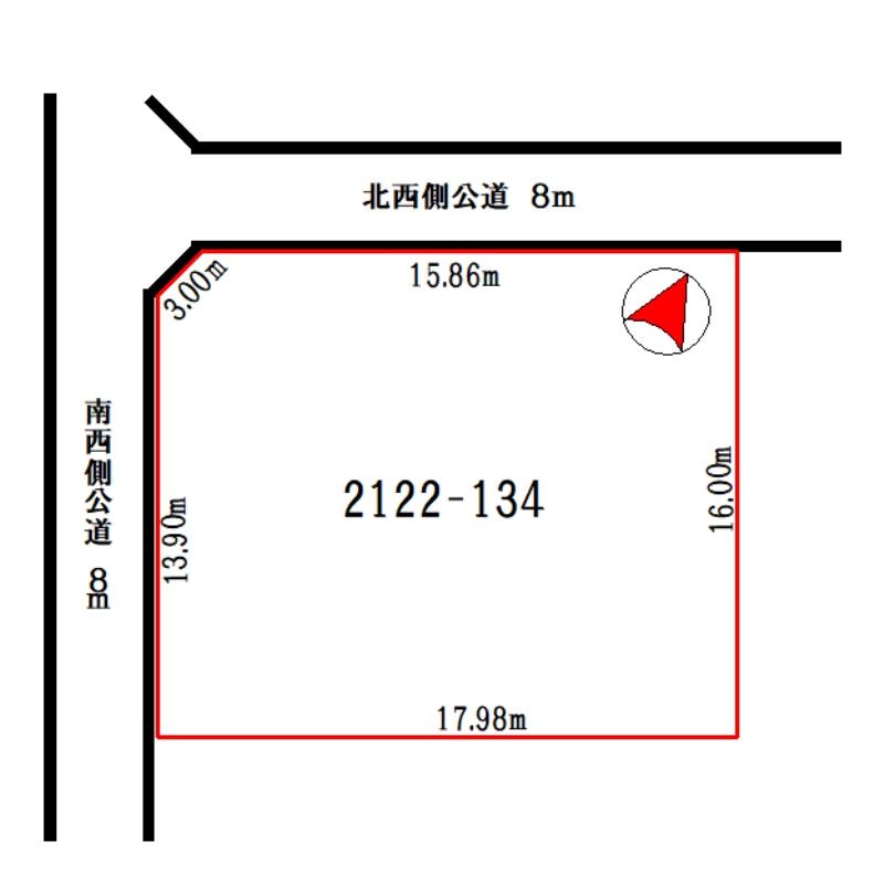 - 北向き角地 間口 15.86m
