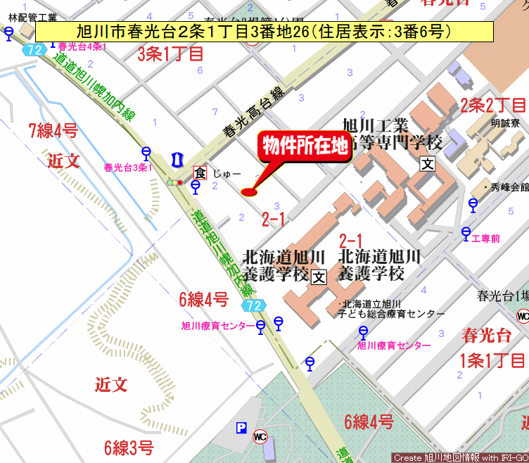 - 旭川市春光台2条1丁目3番地26(住居表示:3番6号)