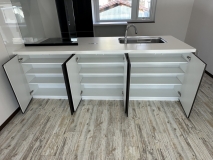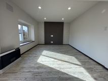 ★間取りを4LDK→3LDKに変更し、広いリビングを実現★テレビを壁掛け用ふかし壁を設置し、サイドにはムーディーな間接照明を配置★すべての窓をトリプルサッシに交換★キッチンはより使いやすく開放感のあるモデルを採用