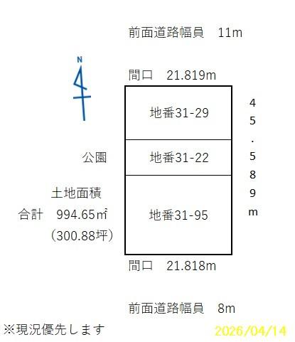- 南向き 間口 21.818m