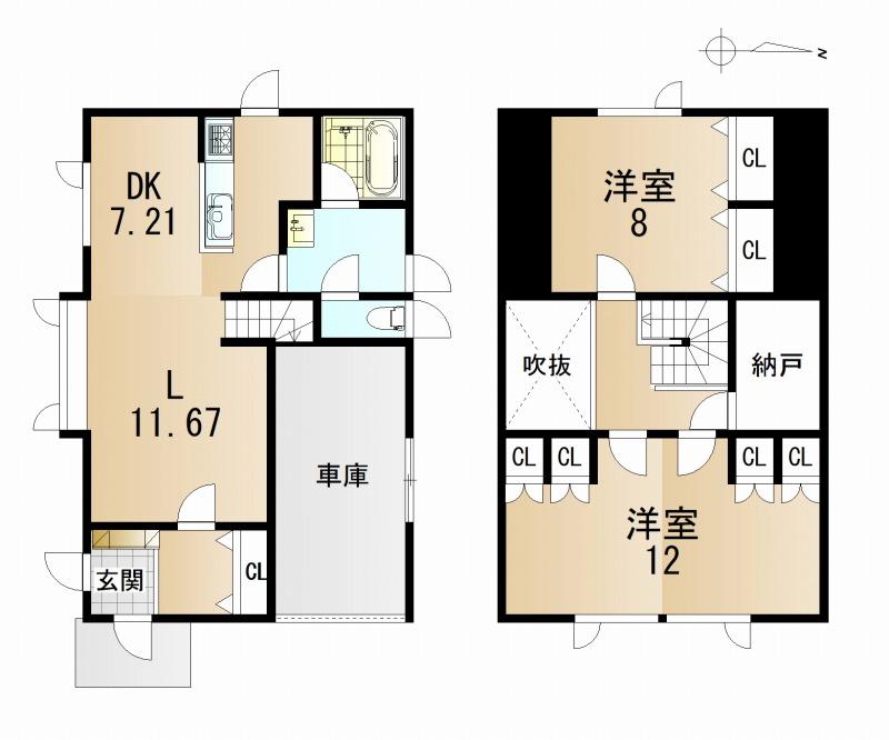 ■2階の洋室を仕切って2部屋にし、2LDKから3LDKへ変更可能♪駐車台数3台可能(組み込み車庫あり)!裏庭もあるので、家庭菜園やバーベキューも楽しめます。