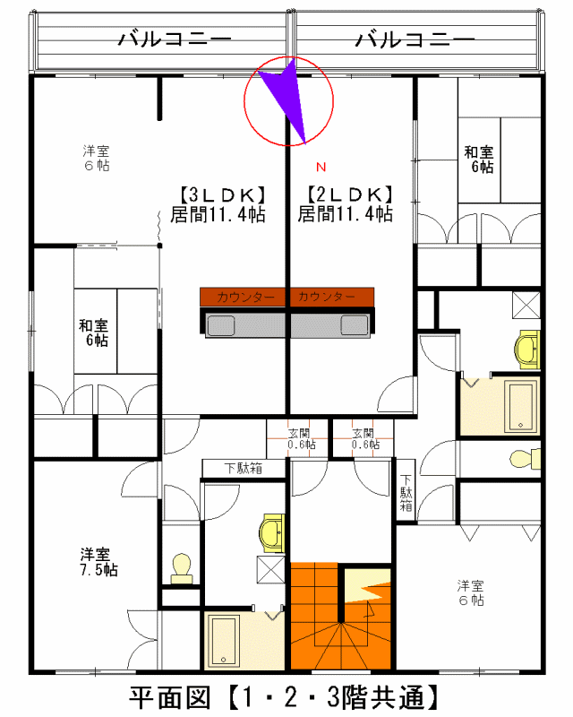 - 3LDK / 11.4+7.5+6+6