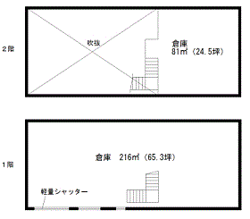 倉庫内作業を行う業種は原則不可。資材置場としてご利用下さい。駐車場はありません。荷物搬入時等、一時駐車に限り可