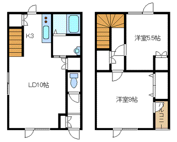 - 2LDK / 1F:10+3K 2F:8+5.5