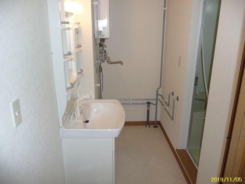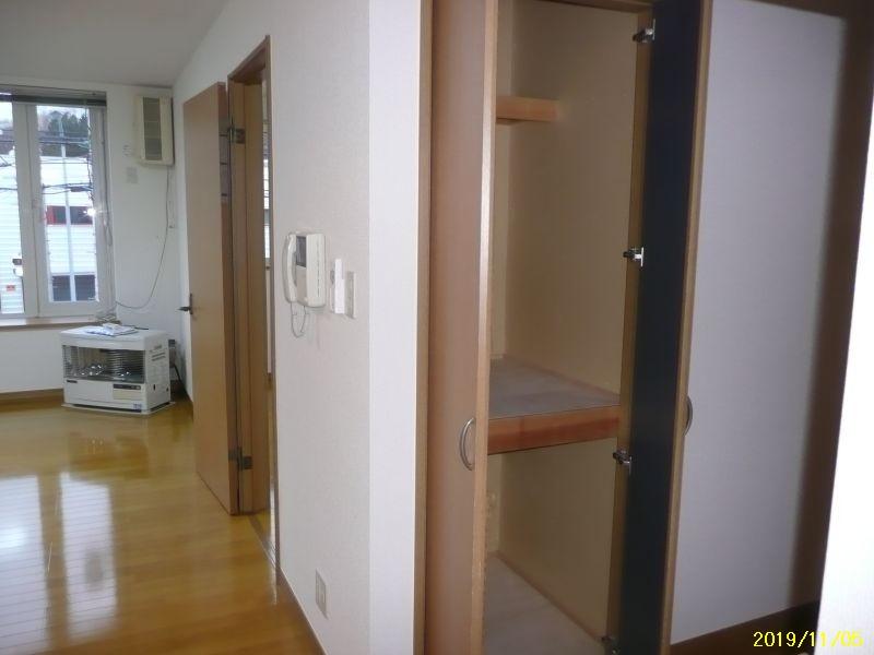 上下水道、都市ガス、灯油FF輻射式暖房、エアコン、シャンドレ、洗濯排水、物置、モニターホン