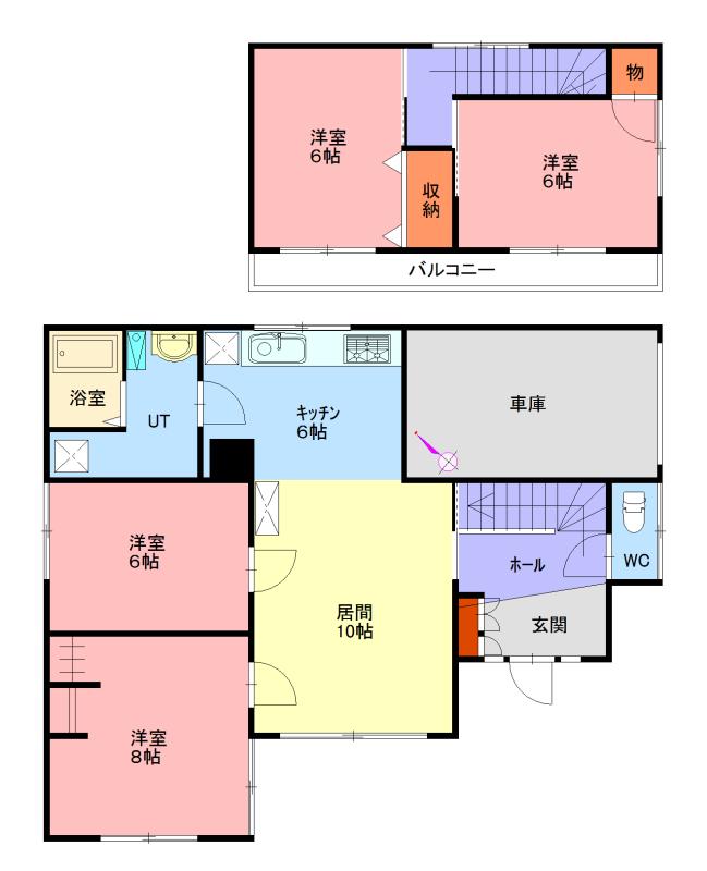 - 4LDK / 1F)10LD+6K+8+6 2F)6+6