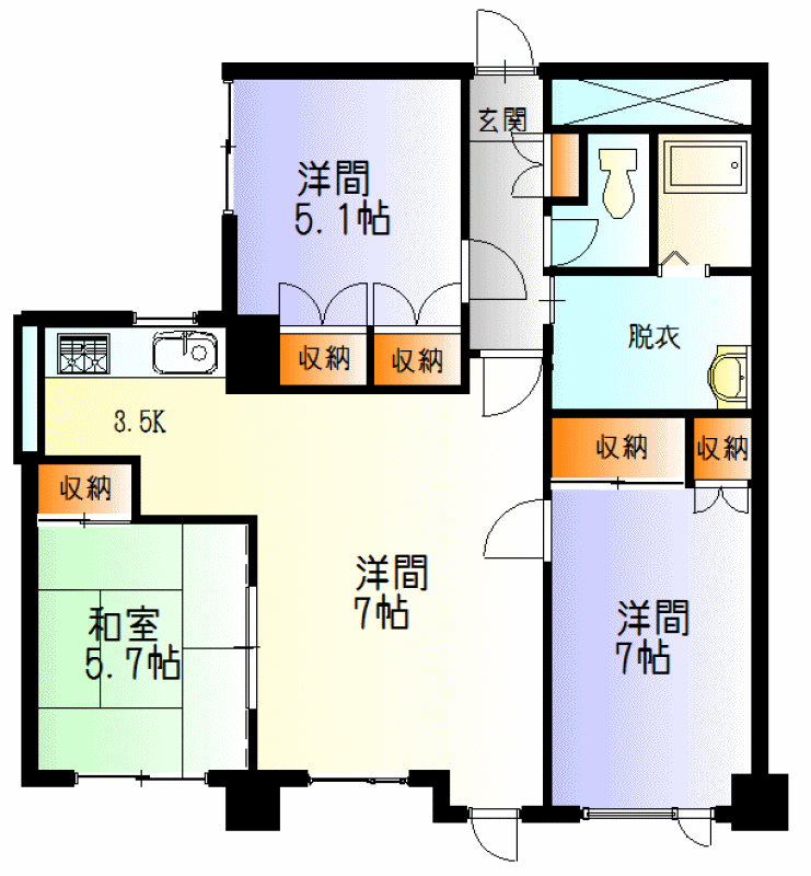 - 3LDK / 12.75+7+6.5+5.4