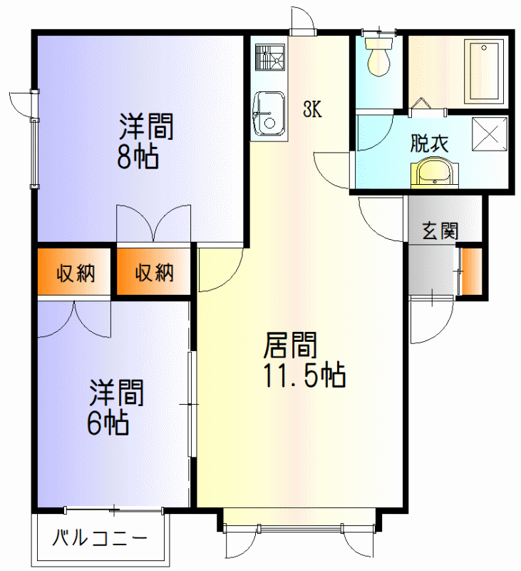 - 2LDK / 11.5+3K+8+6