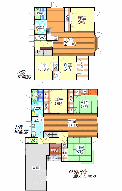 - 6SLDK / 1F)16+3.5K+8+6+洋室(納戸)6 2F)21+8+6+6.5