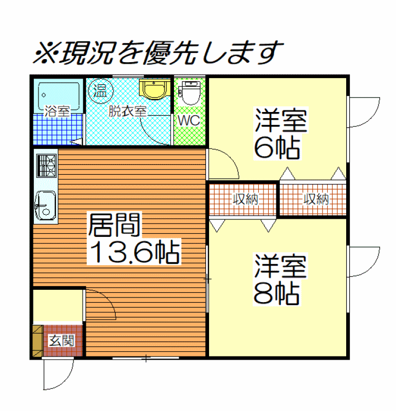 - 2LDK / 13.6+8+6