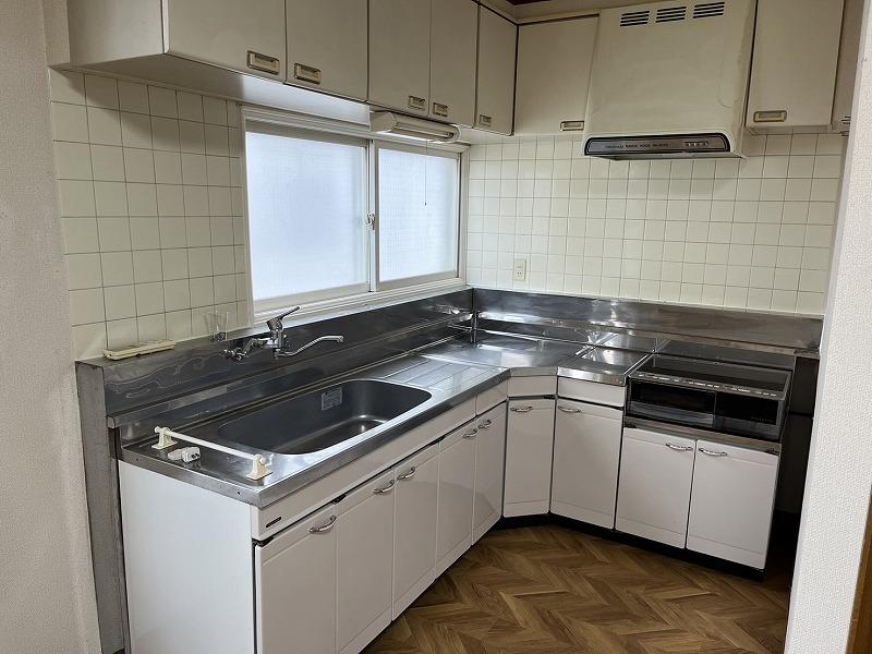 L字型キッチン 2口IHクッキングヒーター 灯油ボイラー 浴室追い焚き