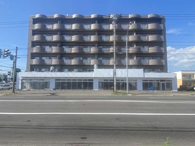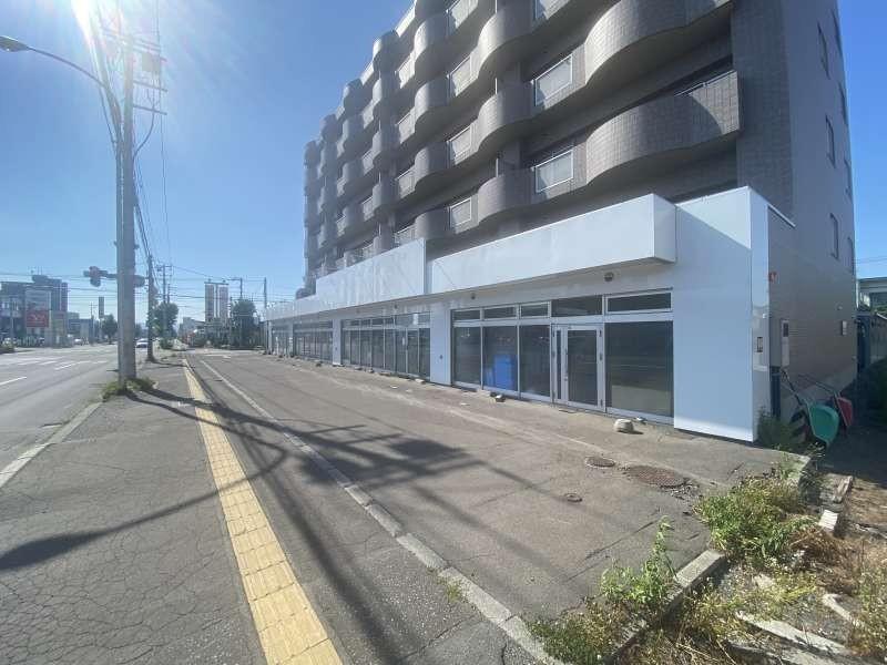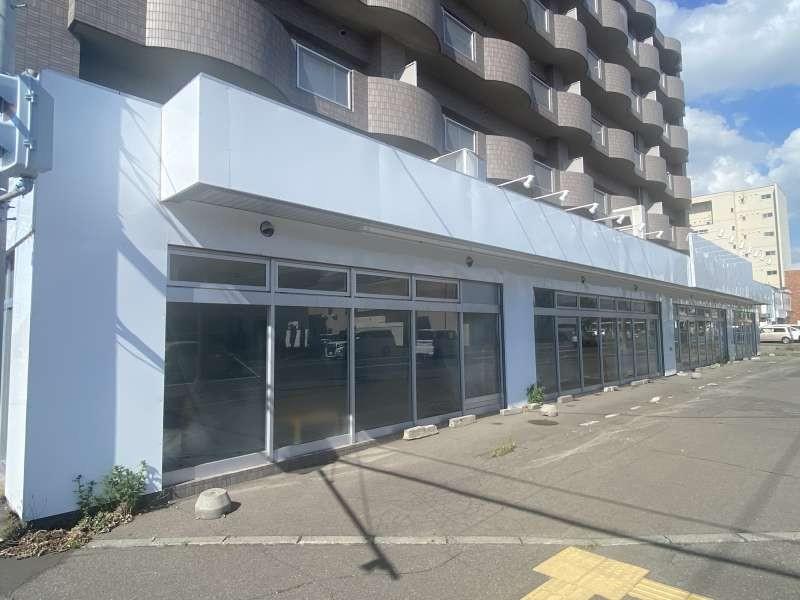 4条通沿いの角地で立地よし。1階部分。駐車は20台以上可能。