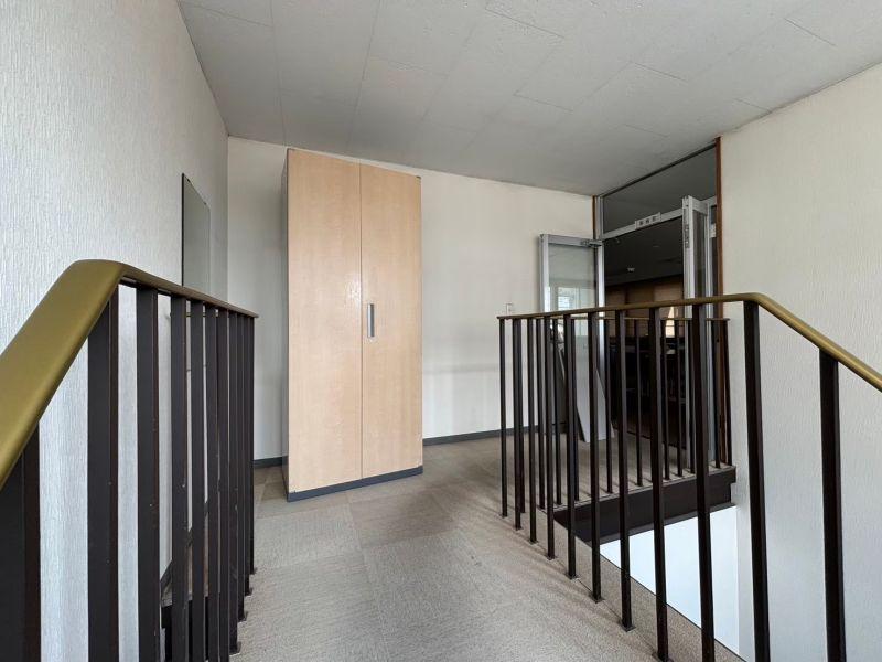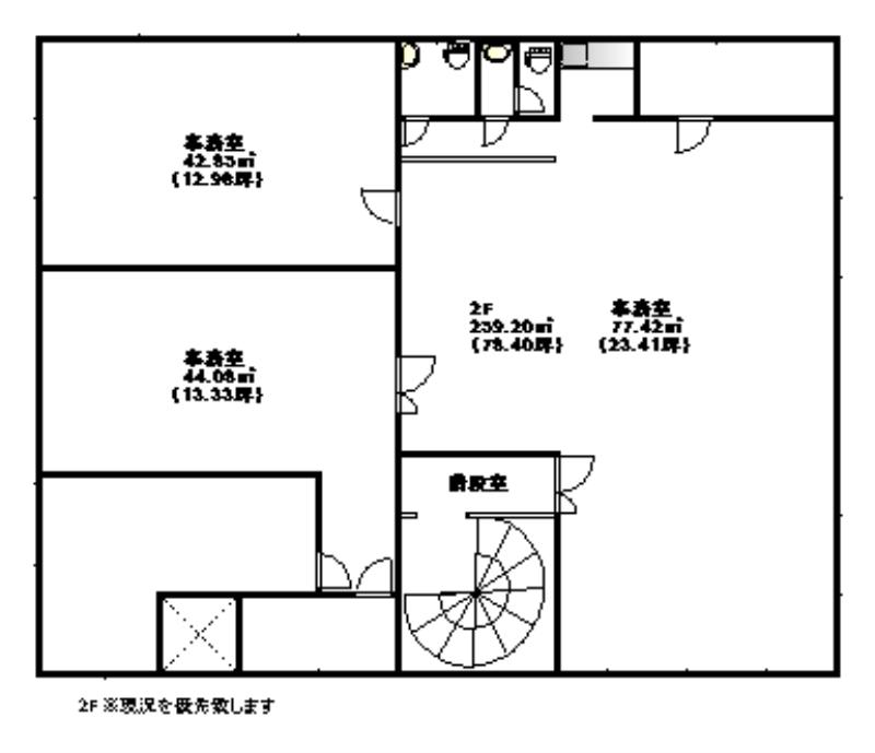 200坪強で駐車場複数台使用可能の大型倉庫・事務所物件です。1Fは70坪近くの大きな倉庫。電動シャッター付で車両も入れます。オシャレな螺旋階段を上ると、2Fは全フロア事務所として使用しておりました。