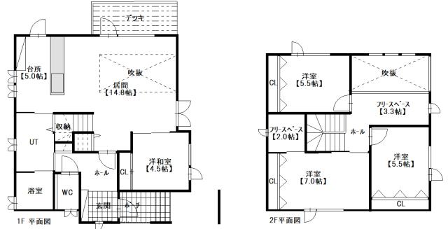 - 4LDK / 1F:19.8LDK+4.5 2F:7+5.5+5.5
