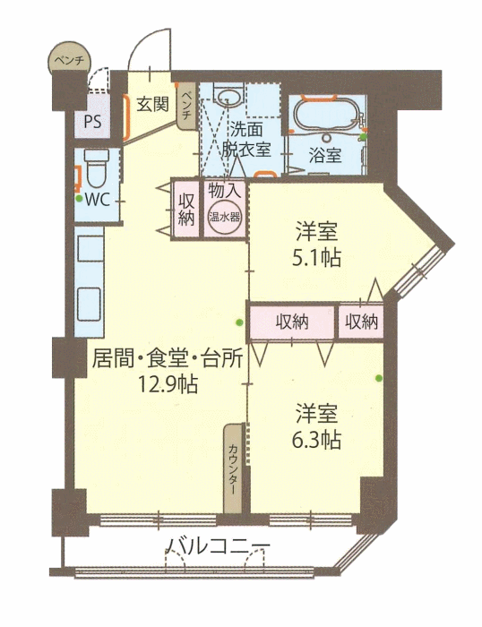 - 2LDK / 12.9LDK+6.3+5.1