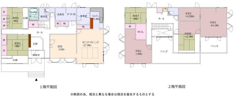 - 9LDK / 1F:LDK23.3+5.4+11+6+8 2F:14.1+5.25+12.8+6+15