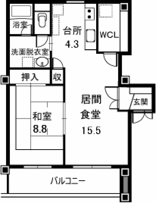 - 1LDK / 15.5+4.3K+8.8