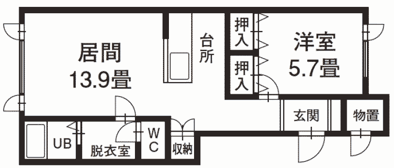 - 1LDK / 13.9+5.7