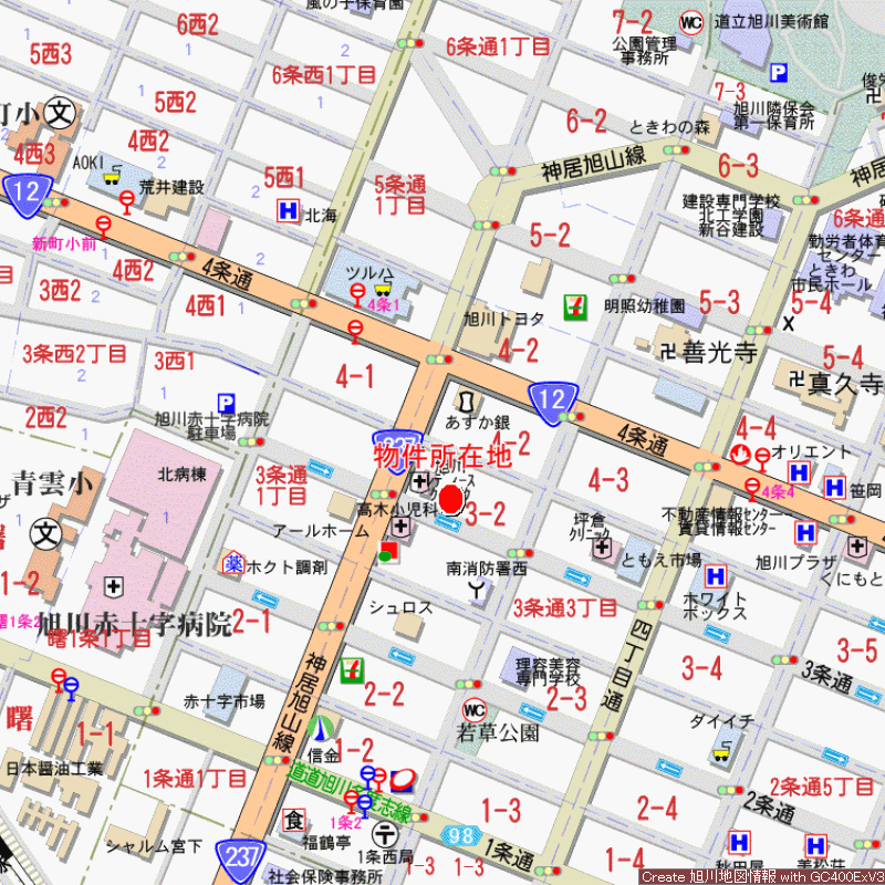 - 旭川市3条通2丁目1386番地