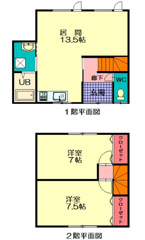 - 2LDK / 13.5+7.5+7